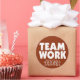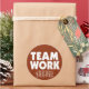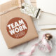 Team Work motivational sticker. Group graphic and "team work" typography to inspire teamwork and cooperation among staff, sports team players, workers, or any group. Background colour can be changed.