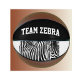 Basket ball with text " Team Zebra " and a zebra close up -original art by Alma Wad . You can customise the text now . Great for a zebra themed outdoor party with many matching items available .