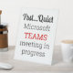 Preserve your meeting sanity with this attractive and straightforward message. Give others a heads up to be quiet, when they come into your space. Featuring a combination of script and modern typography, this pedestal sign gets straight to the point. Place where it can easily be seen and meet in peace!