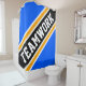 TEAMWORK Bright Blue Yellow Black Racing Stripes Shower Curtain