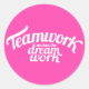 Typographical slogan stickers in bright pink and white. Reads: Teamwork makes the dream work. Ideal to motivate staff, team building exercises or for pink sports teams. Uniquely designed by Sarah Trett for www.mylittleeden.com