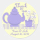 Purple teapot and tea cup with daisies sticker to compliment our invitations. Personalise text and change background colour as preferred.