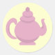 Pink teapot sticker with changeable background colour. Add text as preferred. Compliments our invitations.