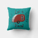 The retro design on this accent pillow is reminiscent of the print advertisements from the 50’s and early 60’s with a teardrop camper in vintage red and silver and the phrase “Let’s travel!” From my original digitally created image.