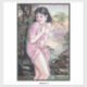 The Shanghai twilight painted the sky in hues of rose and lavender, casting long shadows across the palace gardens. A young woman, Xiuying, meandered through the manicured grounds, the air thick with the sweet scent of night jasmine. Her laughter, like wind chimes, danced on the breeze as she approached a hidden stream, a secret oasis tucked away from the watchful eyes of the household. --- Xiuying was a vision of youthful beauty. Her skin, the colour of the finest porcelain, held a hint of rose, a natural blush that seemed permanently etched on her cheeks. Her black hair, as smooth as cascading water, tumbled down her shoulders in gentle waves. Her figure, though slender, possessed a subtle voluptuousness. The pale pink dress she wore clung lovingly to her curves, the fabric whispering against her skin with every playful step. --- Reaching the stream, Xiuying squealed with delight. The water, cool and inviting, babbled over smooth stones, its surface reflecting the fading light in a million shimmering diamonds. With a mischievous glint in her eyes, she dipped a tentative toe into the water, testing its temperature. A shiver danced down her spine, sending goosebumps erupting across her flawless skin. --- Suddenly, a surge of playful defiance coursed through her. With a toss of her head, she sent the raven tresses flying. Reaching for the hem of her dress, she lifted it playfully, revealing a glimpse of toned legs that ascended to smooth, creamy thighs. She knew she was walking a tightrope; the fabric needed to be high enough to avoid getting ruined, yet low enough to hint at the hidden treasures beneath. --- Xiuying stepped into the stream, the cool water swirling around her ankles, sending a gasp escaping her lips. She winced playfully, the water both refreshing and shocking against her heated skin. She began to wade deeper, the current tugging playfully at her dress, threatening to expose more than she intended. But Xiuying was a master of this game, her laughter echoing as she danced a playful jig, the water swirling around her calves and thighs. --- As she ventured further, the water lapped against the hem of her dress, the thin fabric turning almost transparent. The outline of her legs, smooth and toned, was clearly visible beneath the wet material. A playful glint flickered in her eyes as she realised the precarious situation her playful dance had created. Was it an accident, or a deliberate tease? The answer danced on her lips, unspoken, a secret invitation hanging heavy in the twilight air. --- Made by Artist Yuan XiuTang 1930–1949. This work is in the public domain in its country of origin and other countries and areas where the copyright term is the author's life plus 70 years or fewer.