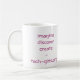 Dot is the girl-bot mascot for tech-girls.org, a non-profit empowering girls to imagine and achieve their future dreams. This mug features the classic purple Dot and the 'imagine, discover, create' tech-girls motto.