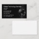 This unique and powerful technology themed business card is designed with a world globe and abstract background in black and grey. The design was created for a computer related business or service related to security, communications, or business services.