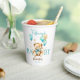 Cute fluffy teddy bear with a bow bearly wait aqua blue gold brown with balloons gold sprinkles baby shower personalised paper cups
