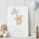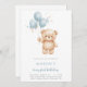 Celebrate your little one's big milestone with our Blue Watercolor Teddy Bear First Birthday Invitation. This sweet and whimsical design features a hand-painted style watercolor bear holding three blue balloons that spell out "ONE."