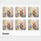 Teddy bear and Bunny In a Pastel Garden Square Sticker