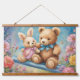 Teddy Bear and Bunny Sitting in garden Hanging Tapestry
