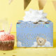 Cute teddy on a bed of citrine jewel-like stones holding a blue heart.