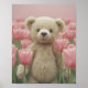 Teddy Bear and Pink Tulip Nursery Poster – Soft Floral Baby Room Wall Art