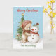 Teddy Bear and Snowman Christmas Tree Card
