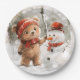 Teddy Bear and Snowman Paper Plate