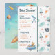 This unique and fun baby shower invitation features an astronaut in space theme, including a sweet teddy bear landing his space ship at the bottom. Complete your personal information about the baby shower with the easy to use template provided. The reverse side has another design of space ships, planets stars and teddy bears in rockets that's suitable for framing for your son's nursery!