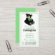 Whimsical Au Pair business card, with graphics of a black teddy bear, with a big green bow, on the top. The back of the card is done in solid green. Personalise the custom text to suit your needs.