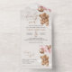 Teddy Bear, Baby Bear, Pink Balloons, Baby Shower All In One Invitation