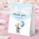 Say "thank you" in the sweetest way with these custom baby shower favour boxes! Featuring "thank you" in elegantly whimsical typography and a charming watercolor illustration of a cute teddy bear with a blue balloon, these favour boxes add a lovely storybook touch to your celebration. Perfect for holding small treats, candies, or keepsakes for guests, and easily customisable with name and baby shower date, these adorable favour boxes are the perfect way to send guests home with a little piece of your special day.