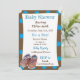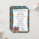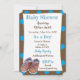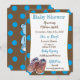Adorable brown and blue teddy bear and baby booties themed baby shower invitation.