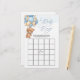 This design features a friendly Teddy Bear with blue and cream balloons. Text "Baby Bingo" is written in modern calligraphy font .