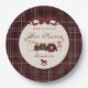 Teddy Bear Baby Shower Girl Plaid Burgundy Bow Paper Plate