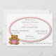 Sweet pastel baby shower invitation. With graphic artwork of a pastel pink on white polka dot pattern as a background and a pink rimmed white oval text area, in the middle. Cute cartoon teddy bear, in the lower left corner, finishes off this baby shower invitation sure to please the mum to be. Customise the text to suit your party needs.