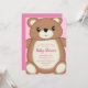 An adorable teddy bear baby shower invitation in pink that is perfect to welcome a baby girl on the way!