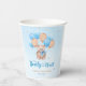 Watercolor teddy bear blue balloons We can bearly wait baby shower paper cups. Matching items available.