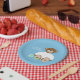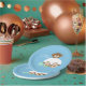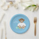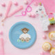 A Baby Shower Paper Plate with a Teddy Bear dressed in a white bodysuit. Customise the paper plate with your own text in an easy way.