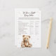 This charming game card challenges your guests to guess the price of common baby items. The person with the closest total price without going over wins! It's a fun and easy way to get everyone laughing and engaged.