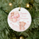Adorable Baby's 1st Christmas ornament featuring a teddy bear holding a bunch of pink & brown balloons. Add your photo on the back for a keepsake gift.