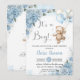 Teddy Bear Balloons Baby Blue Floral Boy Shower Invitation