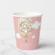 Step into a world of whimsy and anticipation with our Teddy Bear Balloons Girl Baby Shower Paper Cups, a heart warming celebration where dreams take flight amidst a backdrop of soft pastel hues and retro charm. This enchanting design features a darling beige bear soaring in a basket, lifted by a magnificent air balloon crafted from an array of small beige and gold balls. Each detail is lovingly crafted, capturing the essence of joy and excitement as the little one's arrival draws near. The soft pink background envelops the scene with a gentle warmth, while the retro font adds a touch of nostalgic elegance to the overall composition. Most lettering is editable - click the "Customise Further" button to edit. Matching items available.