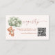 Teddy bear and sage green balloons baby shower QR code registry card.
