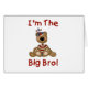A brown bear wearing a propeller hat and bright red text that reads 'I'm the Big Bro!" on big brother Tshirts, tote bags, mugs, buttons, cards, keychains, and more!