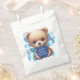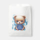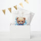 Personalised favour bag to include as part of your baby shower celebration. If you are looking for baby shower party decor, consider this teddy bear blue baby shower favour bag for your party favours. Use the template to personalise the favour bag with the name of the mum-to-be.