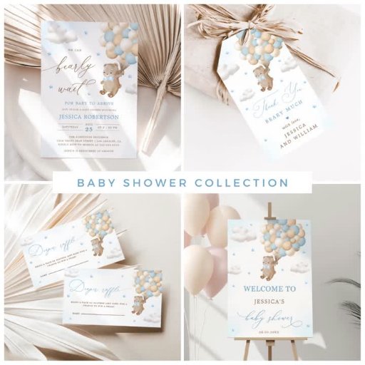 Teddy Bear with Blue Balloons Baby ShowerDesigned by A S
