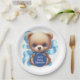 Personalised paper plates to include as part of your baby shower celebration. If you are looking for baby shower party decor, consider this teddy bear blue baby shower party plate. Use the template to personalise the paper plate with the name of the mum-to-be.