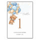 This design features a friendly Teddy Bear with blue and cream balloons. Text "Table" is written in modern calligraphy font. You can change the table number to your requirements (2, 5...7...10...) - each time a new card, and add all these cards to your cart.