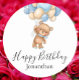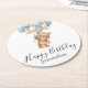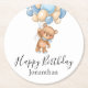 Teddy Bear Blue Balloons Happy Birthday Round Paper Coaster
