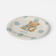 Serve up sweet treats in style with these adorable Teddy Bear Baby Shower Paper Plates! Featuring the signature watercolor teddy bear cuddling a bottle and blanket, set against a playful blue polka dot background, these plates are the perfect addition to your bear-themed celebration.