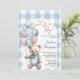 Teddy Bear Boy Blue Plaid Arch Baby Shower Invitation