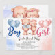 Teddy bear boy or girl gender reveal baby shower invitation template. Two teddies boy and girls, pink and blue balloons for a gender reveal party.