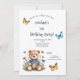 Teddy Bear Butterflies Baby Boy 1st Birthday Party Invitation