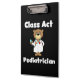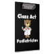 A cute paediatrician design clipboard any paediatrician is sure to love, features a teddy bear doctor with lab coat and stethoscope and white text that reads Class Act Paediatrician on a black background.