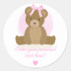 Teddy Bear Cute Pink Hair Bow Baby Girl Shower Classic Round Sticker