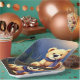 On this paper plate, you can see a charming beige teddy bear wearing a blue scarf, sitting in front of a picturesque forest. The bear's black eyes, nose, and mouth give it a playful charm, while its brown feet and ears create a lovely contrast against its beige fur. This design is a delightful addition to any party or event, bringing a cosy and welcoming atmosphere to the table. Whether it's a birthday party, picnic, or family gathering, this teddy bear paper plate is sure to put a smile on everyone's face.