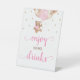 Watercolor Teddy Bear Pink and Rose Gold Balloons Enjoy Some Drinks Bar Table Baby Shower Sign.