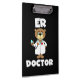 A cute ER doctor design clipboard any emergency room doctor is sure to love, features a teddy bear doctor with lab coat and stethoscope and white text that reads ER Doctor on a black background.